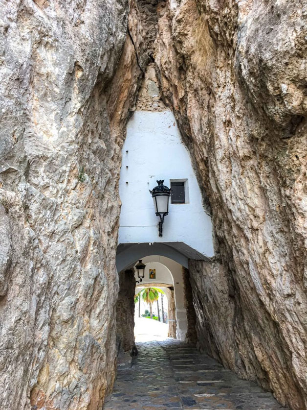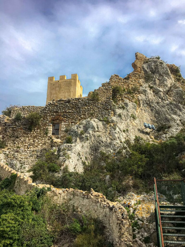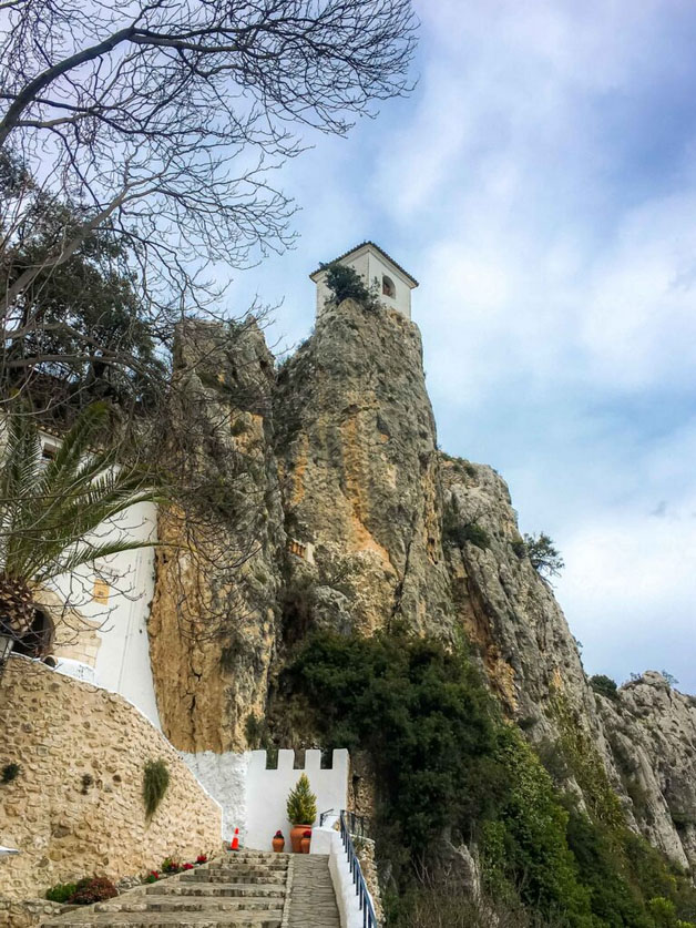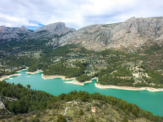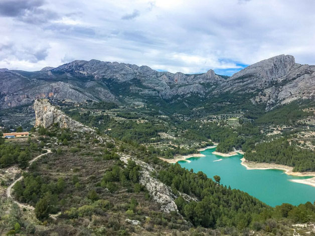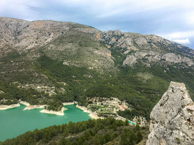 Maleńka miejscowość w górzystej części prowincji Alicante. Na szczycie skalistych wzgórz wznosi się zamek, do którego wchodzi się przez skalny tunel o długości 15 m, zwany Wrotami św. Jana. Osada powstała w tym miejscu w VIII w. Początkowo znajdowała się tu forteca, zbudowana przez Maurów, składająca się z zamku i wieży Crag Alcalá. Później była wielokrotnie przebudowywana. Obecny zamek z XI w. nosi nazwę Castillo de San José, czyli zamek Świętego Józefa lub arabską L’Alcazaiba. Z zamku rozpościera się zachwycający widok na szmaragdowe jezioro. W wiosce u podnóża zamku, w której zamieszkuje niespełna 200 osób, mieszczą się liczne kawiarnie, restauracje i sklepiki, głównie z pamiątkami, rękodziełem i lokalnymi wyrobami.